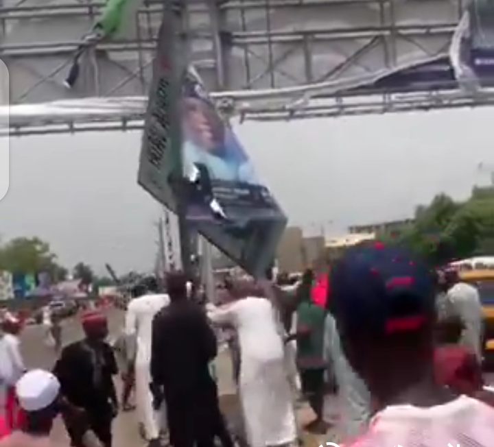 In a video on socials, youths in Kano is seen destroying the billboard of Bola Tinubu.