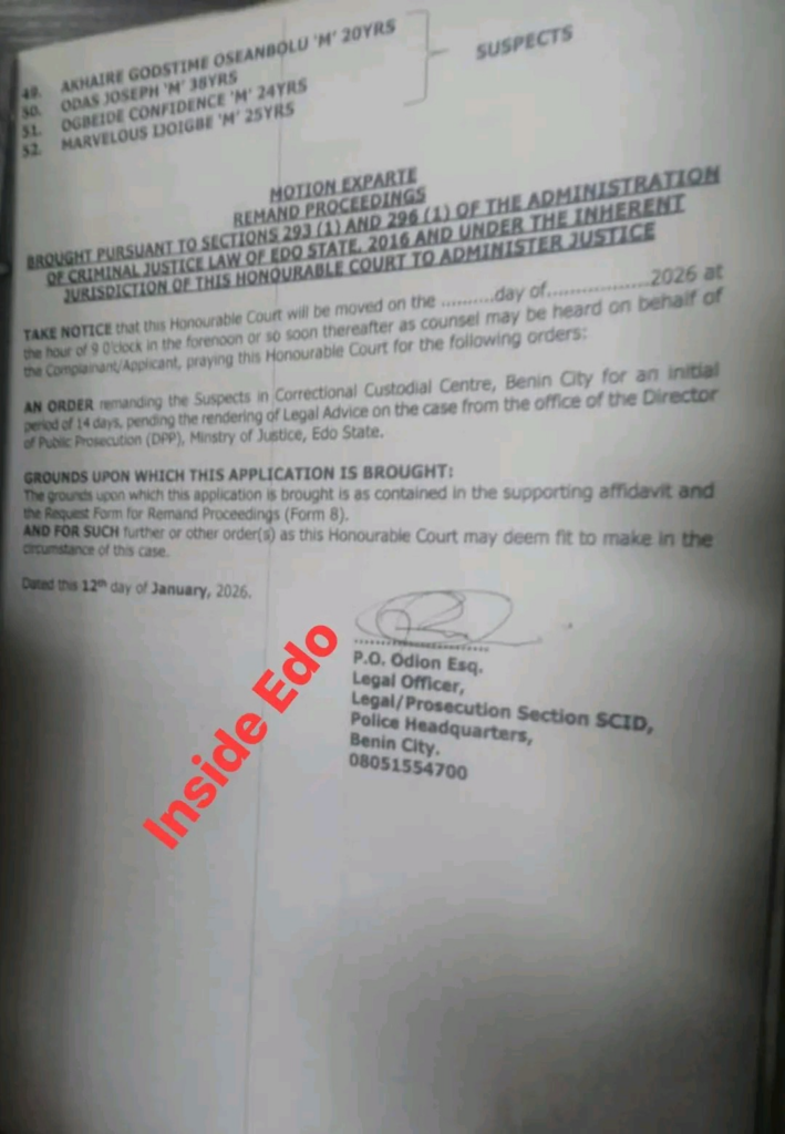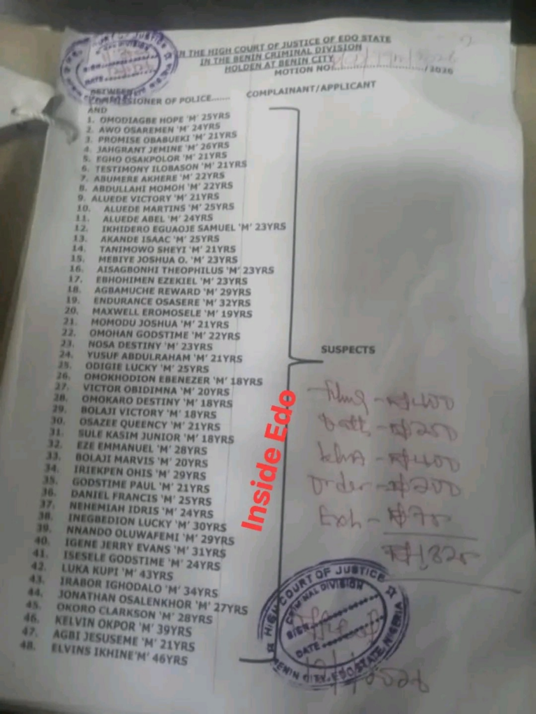 On Monday, the arrested students were arraigned before a court in Edo State, where the police filed an application seeking their remand in custody.