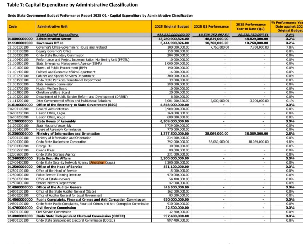 This is according to SaharaReporters‘ review of the state’s 2025 Q1 budget performance report.
