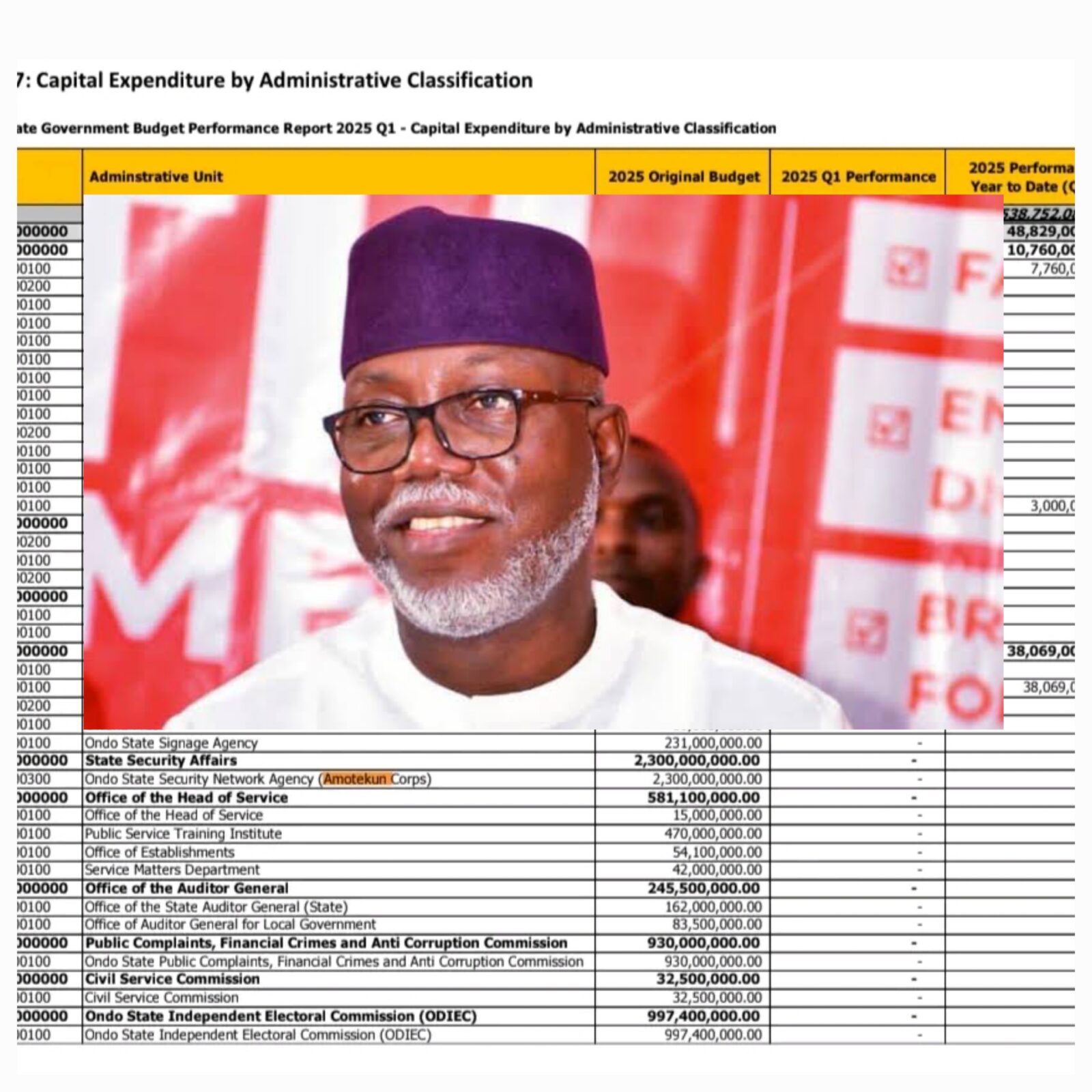 Amid rising insecurity across Ondo State, Governor Lucky Aiyedatiwa has spent N167 million on refreshments and meals in the first quarter of 2025 while recording zero capital expenditure on its regional security outfit, Amotekun, despite allocating N2.3 billion for it.
