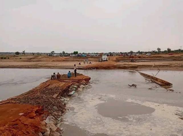 Acvording to Daily Trust, the self-help bridge built in place of the main bridge, which collapsed seven months ago, has been serving as a passage to motorists plying the road.